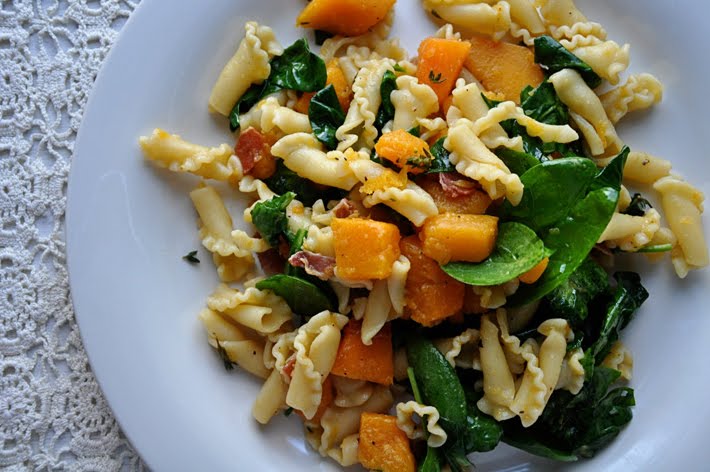 Pasta with Butternut Squash, Spinach, and Prosciutto