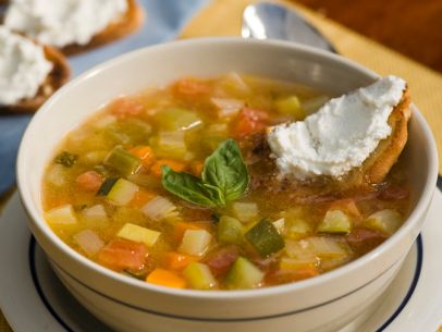 - 5. 5. To serve, whisk 1/4 c of the pistou into the hot soup, then season to taste. Depending on the saltiness of your chicken stock, you may need to add up to another T of salt. Serve with grated Parmesan cheese and more pistou.