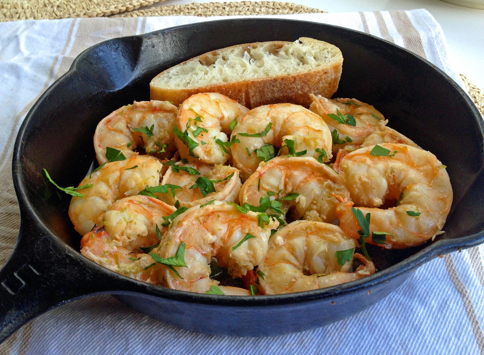 - 4. Increase heat to medium-low and add shrimp with marinade. Cook, without stirring, until oil starts to gently bubble, about 2 minutes. Using tongs, flip shrimp and continue to cook until almost cooked through, about 2 minutes. Increase heat to high and add sherry vinegar and parsley. Cook, stirring constantly, until shrimp are cooked through and oil is bubbling vigorously, 15 to 20 seconds. Remove and discard bay leaf. Serve immediately.